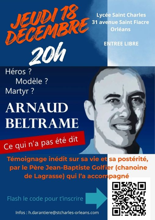 Le Père Jean-Baptiste Golfier tiendra une conférence sur Arnaud Beltrame le jeudi 19 décembre 2025 à 20h00 au lycée Saint Charles.
